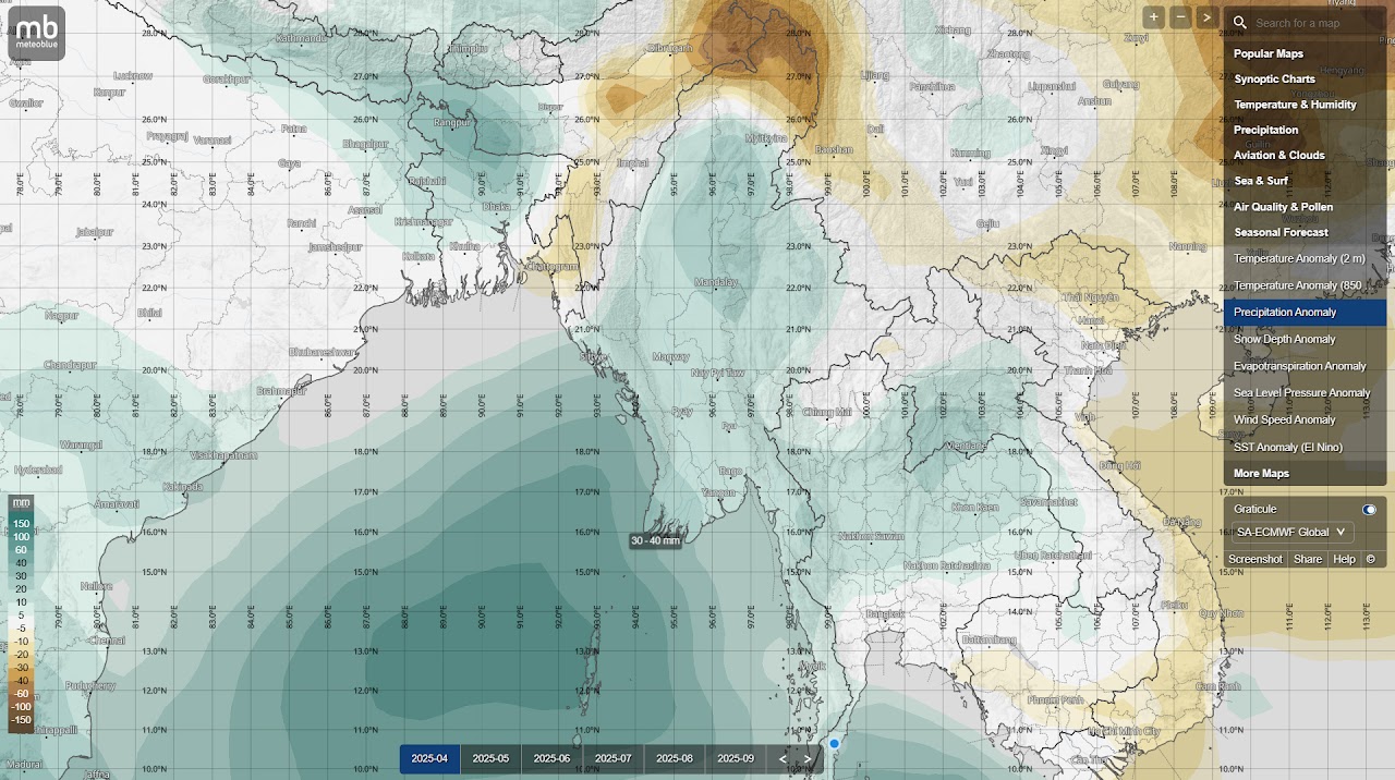 ဧပြီ ၁၁ ရက် ည ၆ နာရီ ၄၅ မိနစ် - Meteoblue Multi model forecast